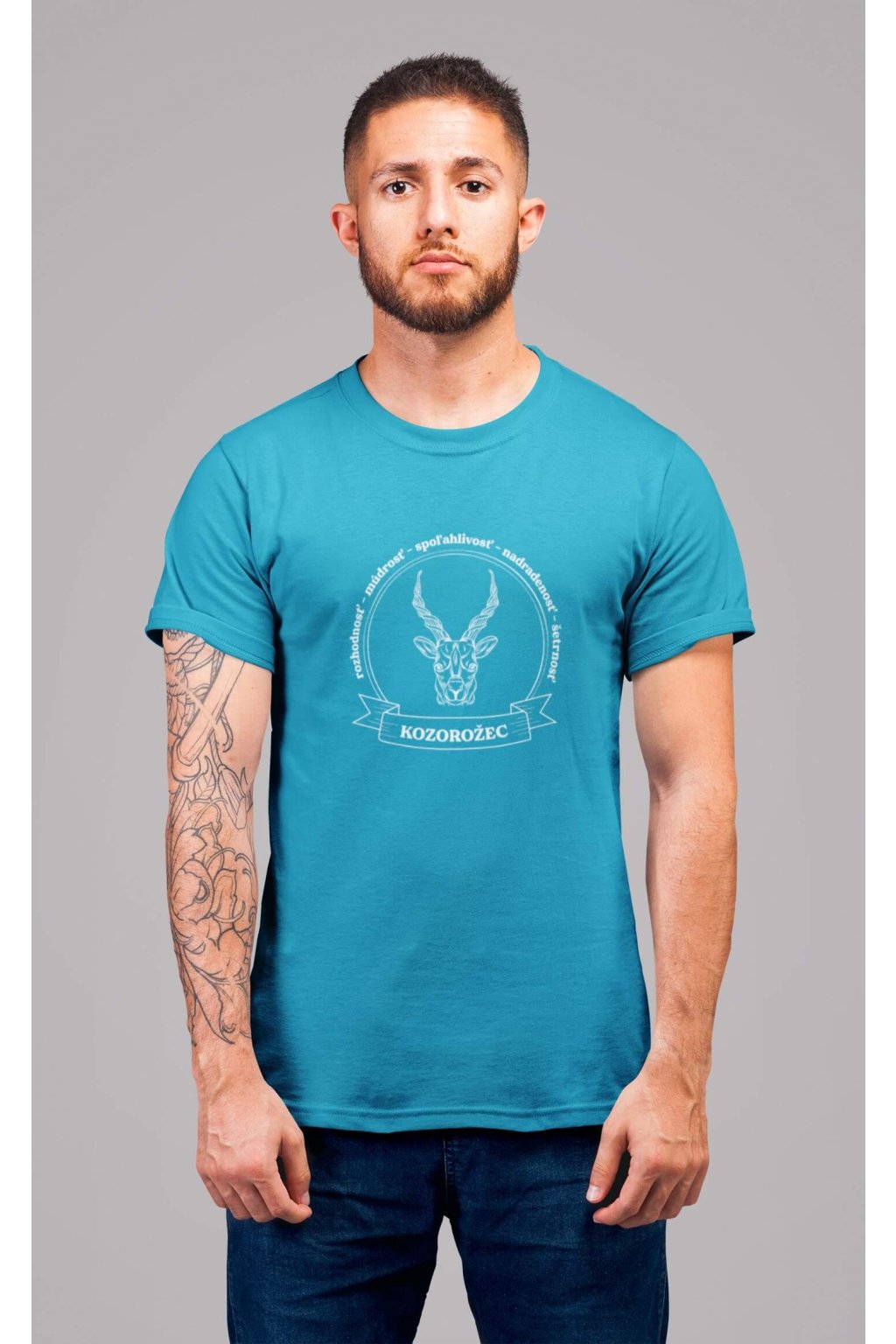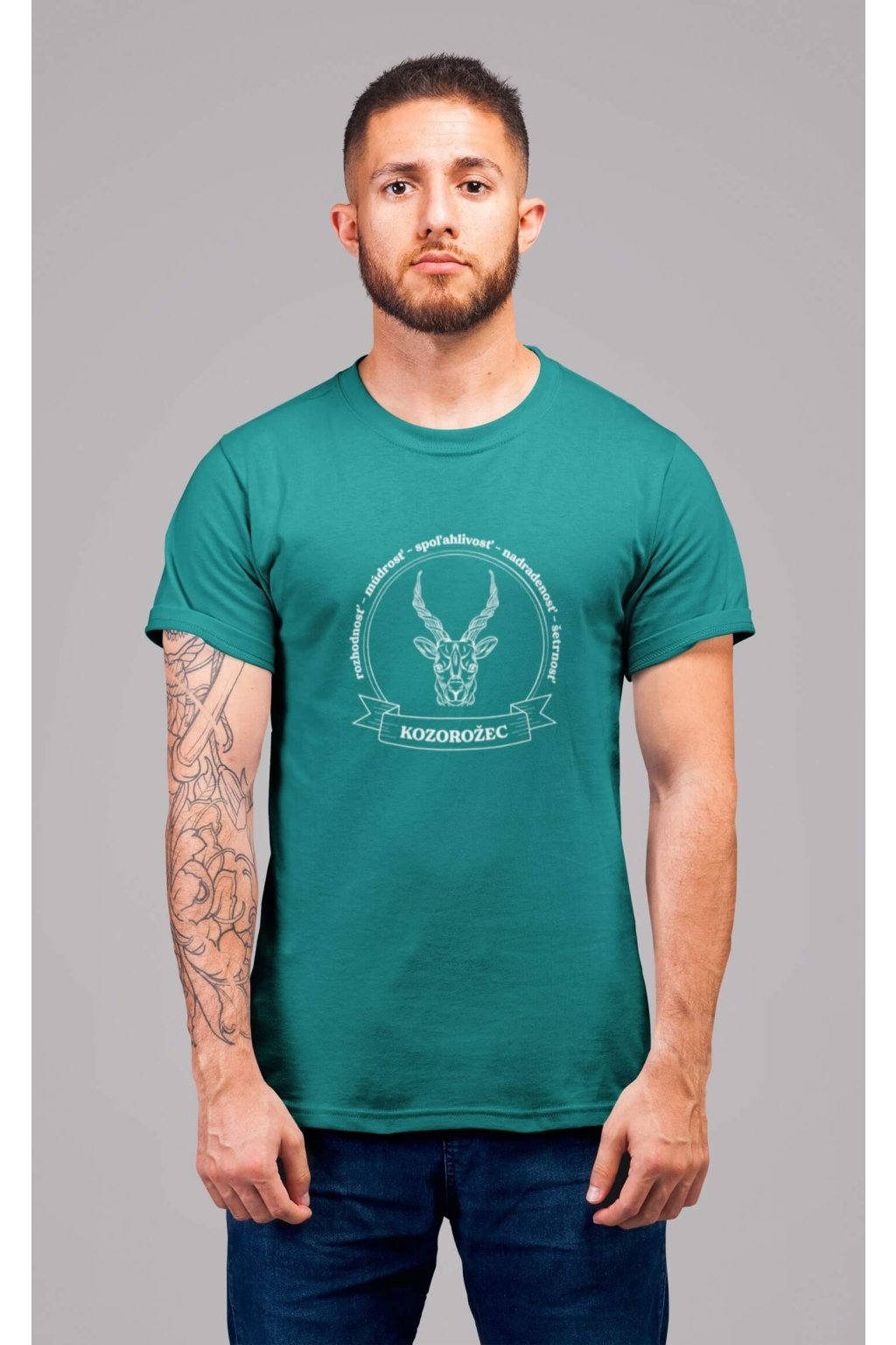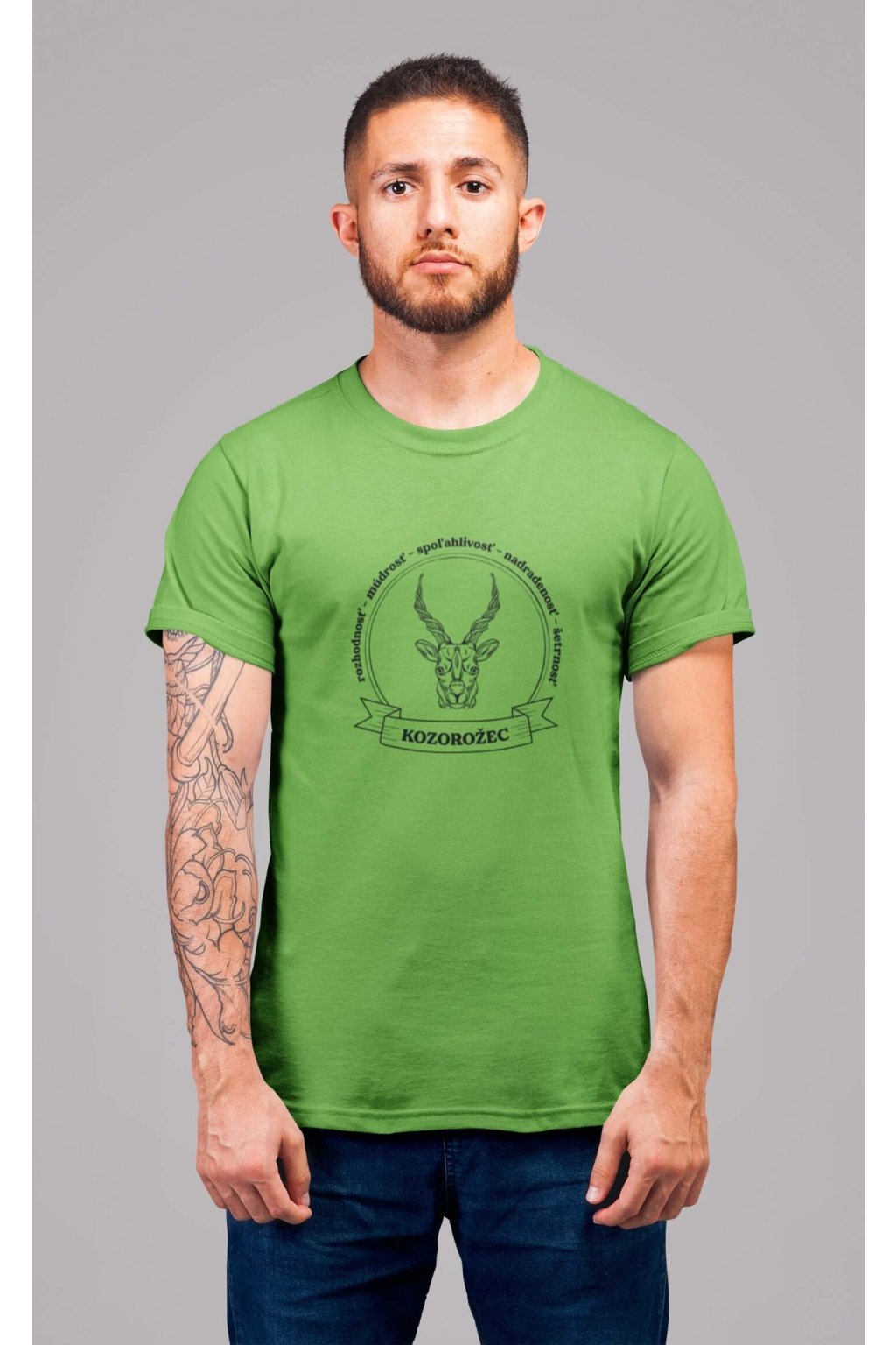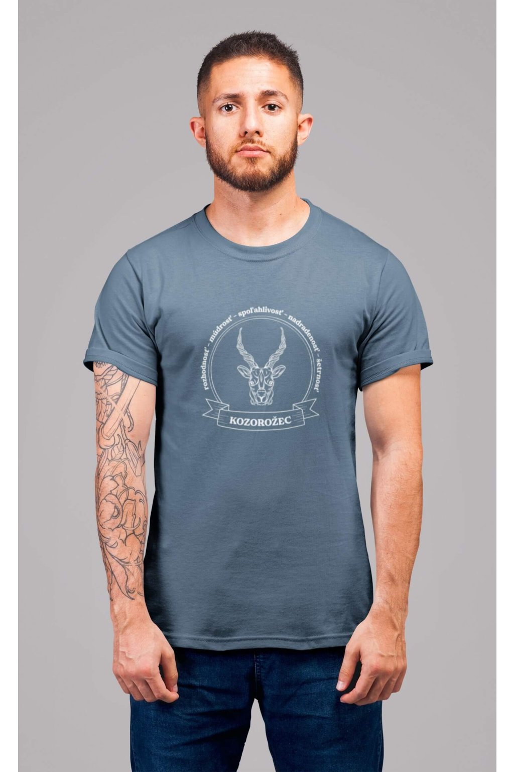Pánske bavlnené tričko s krátkym rukávom s motívom znamenia KOZOROŽEC a opisom jeho vlastností.