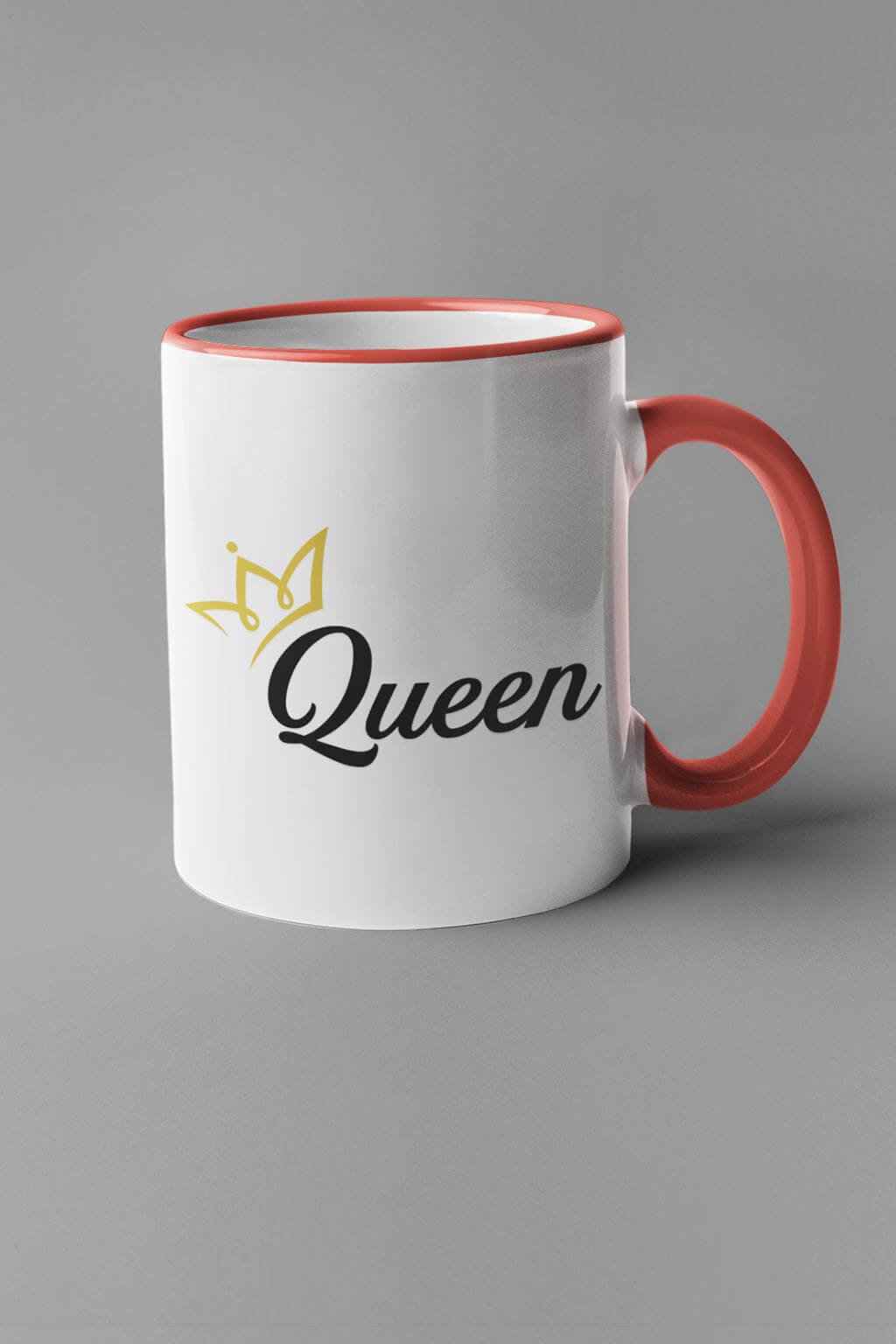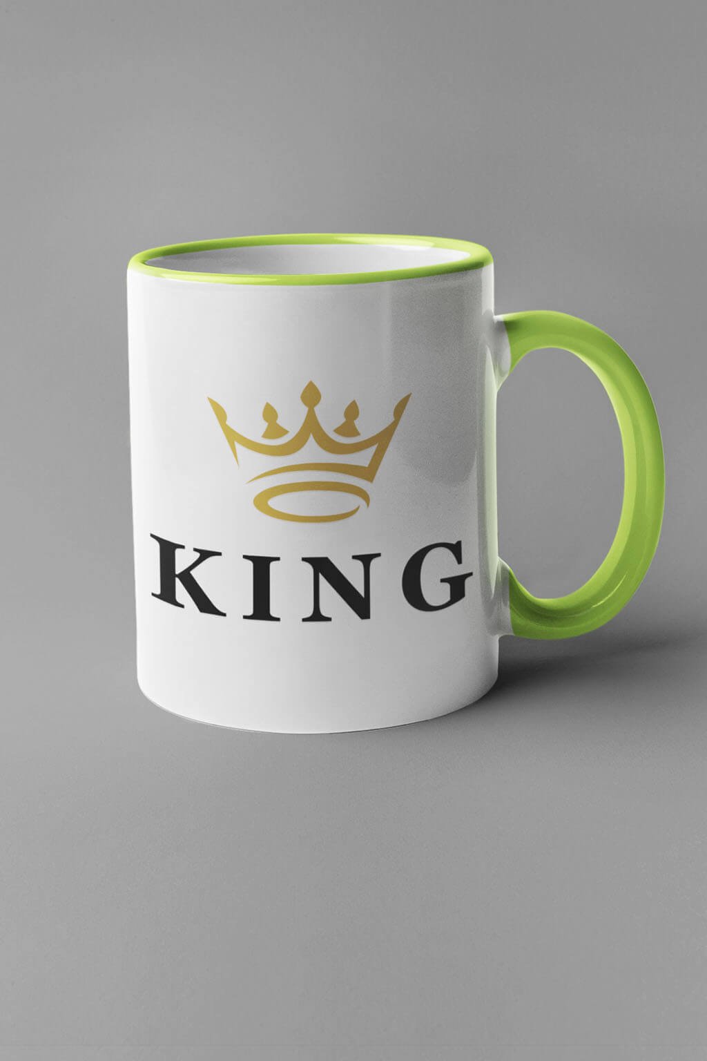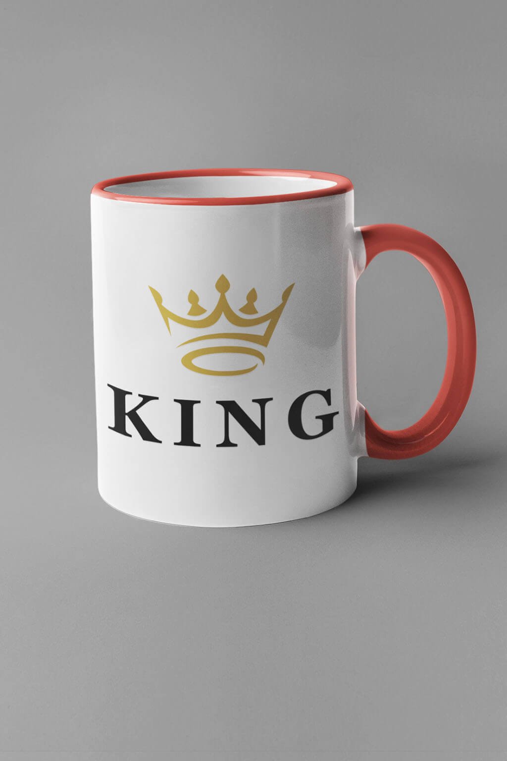 Biely keramický hrnček pre všetkých zaľúbených. Pánska šálka s kráľovskou korunou a nápisom: ,,KING," a dámska šálka s korunou a nápisom: ,,QUEEN."