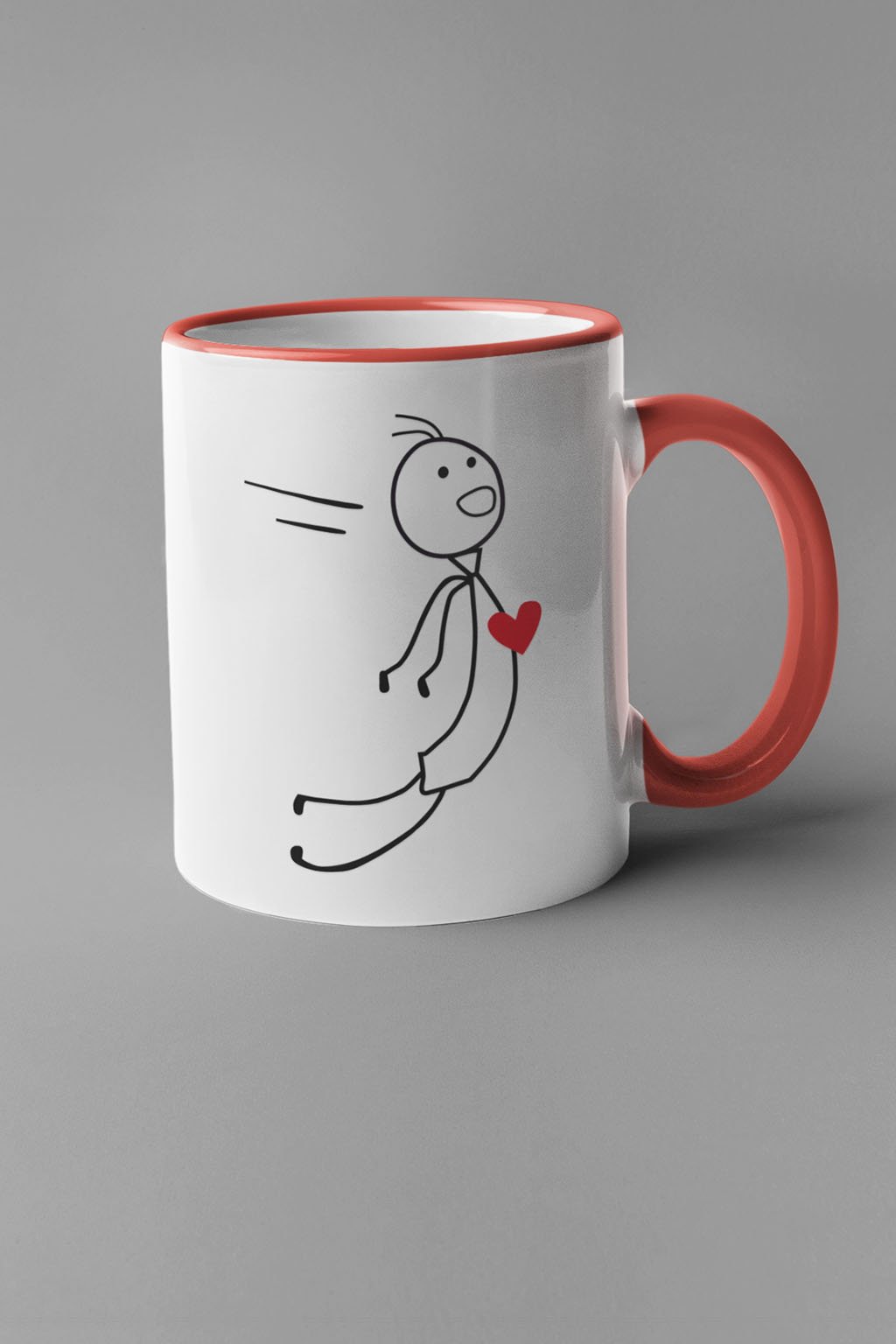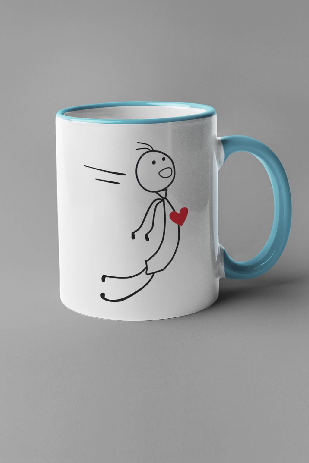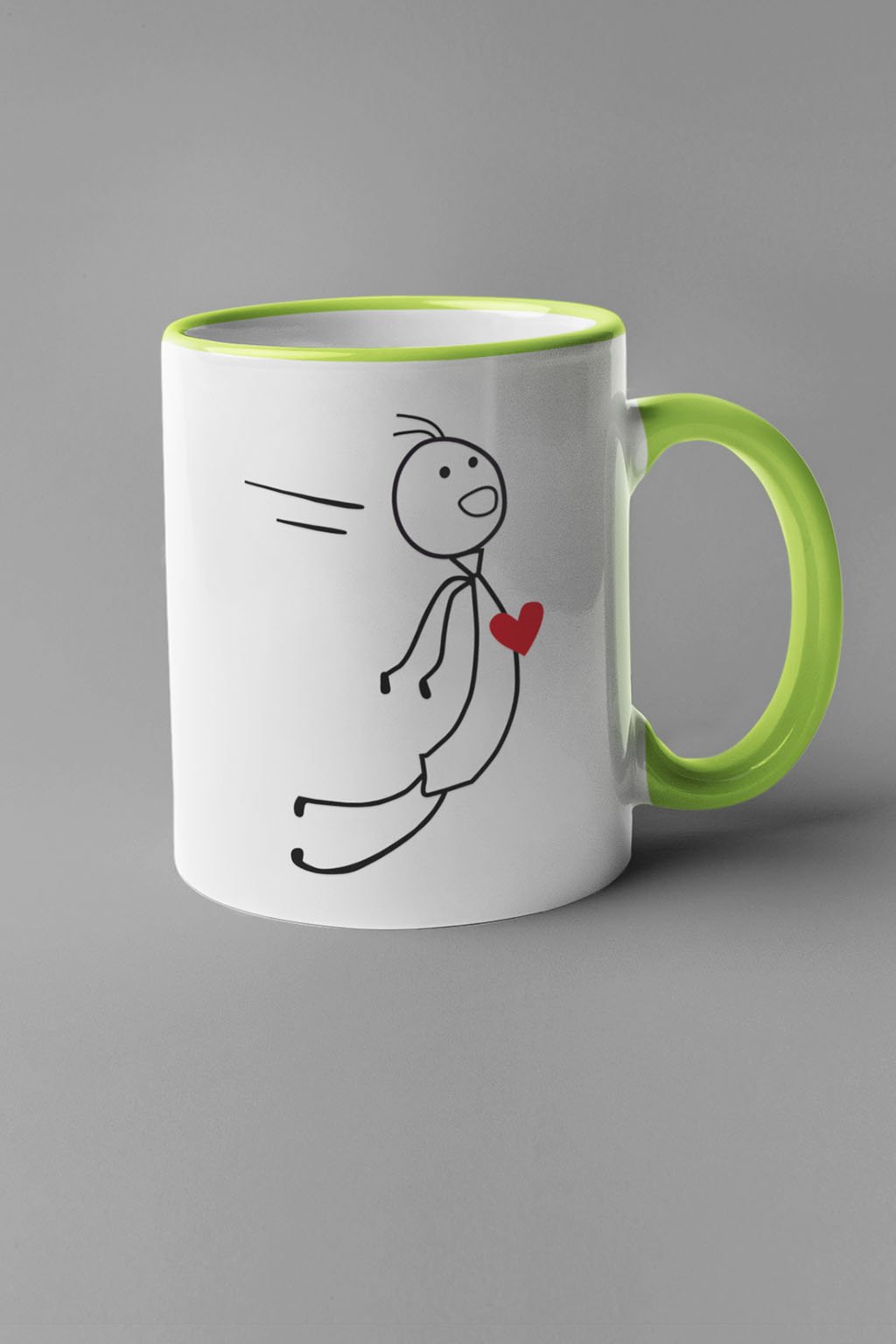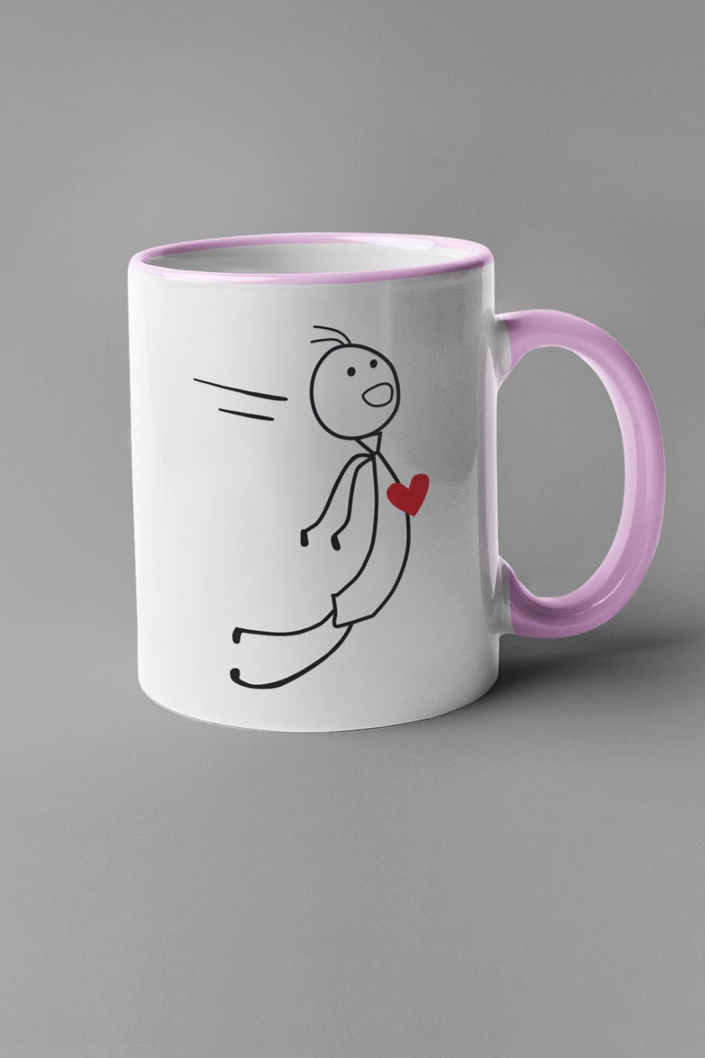 Biely keramický hrnček pre všetkých zaľúbených. Dámska šálka má obrázok postavičku dievčaťa s magnetom a pánska šálka postavičku chlapca so srdiečkom.