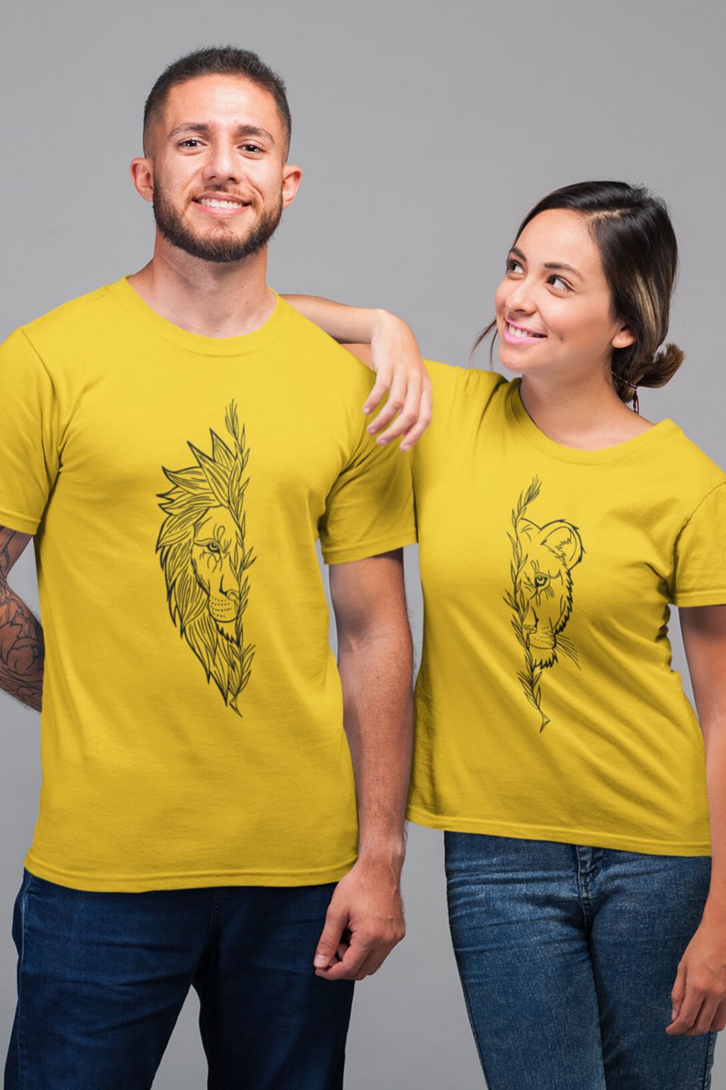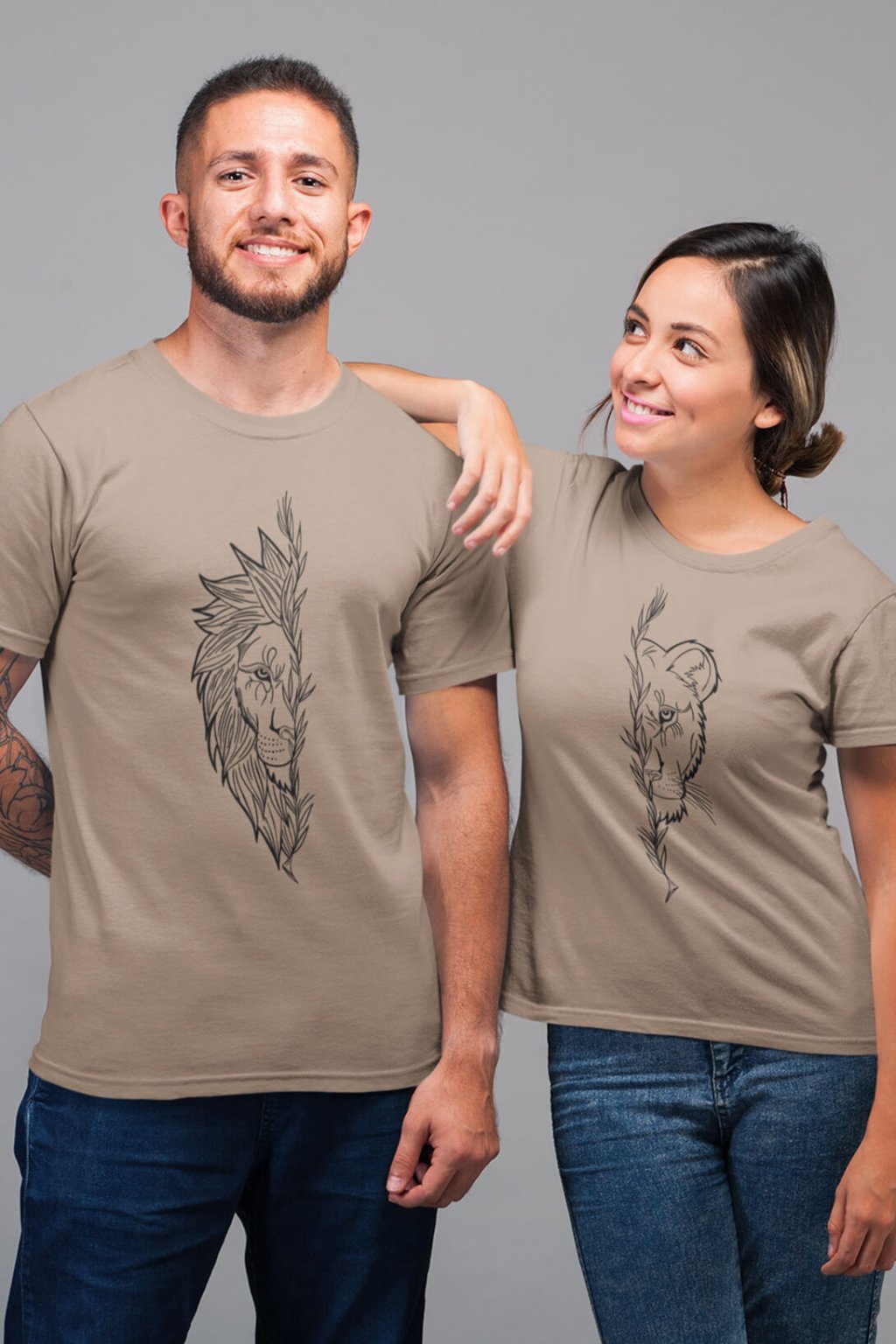 Bavlnené tričká pre páry s roztomilou potlačou. Na pánskom tričku je obrázok leva a ženy majú levicu. Tričká, ktoré sa vzájomne dopĺňajú, potešia každý zamilovaný pár.