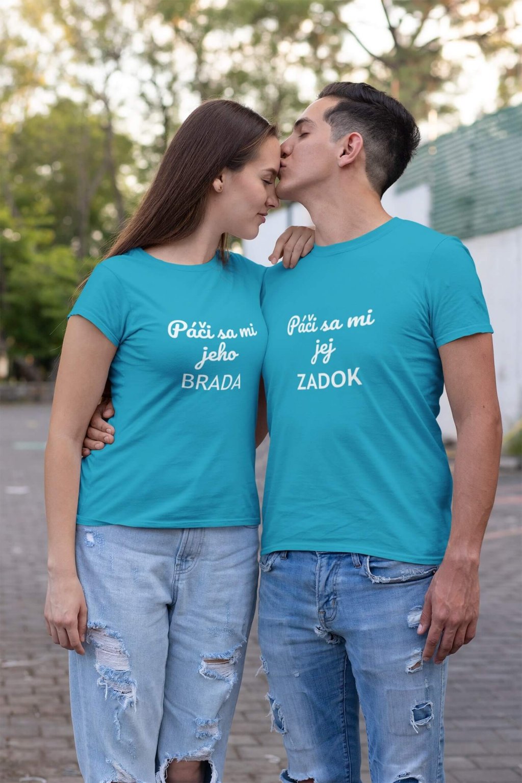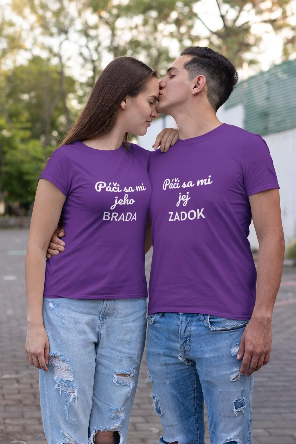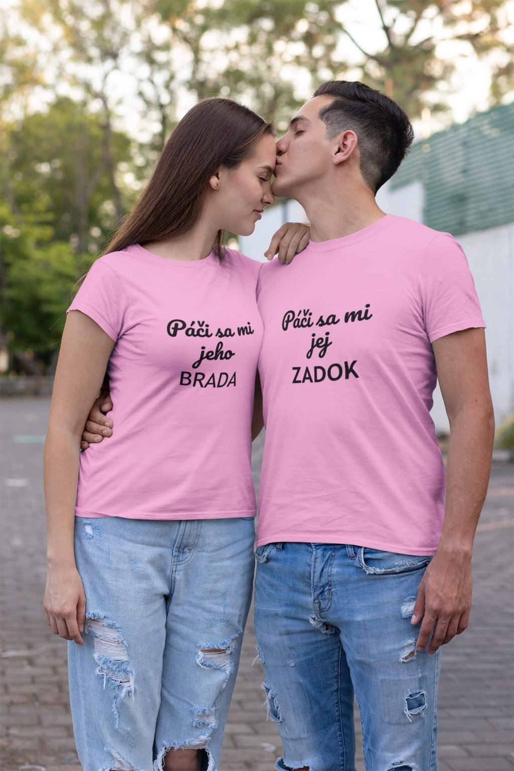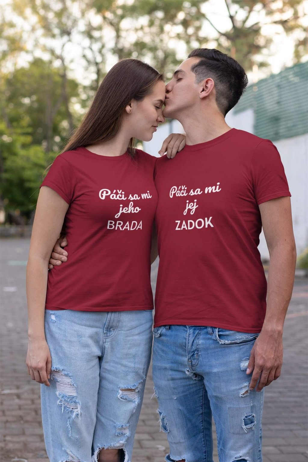 Bavlnené tričká pre páry s vtipnou potlačou. Na tričkách je doplňujúci sa text, na pánskom: ,,Páči sa mi jej ZADOK" a na ženskom: ,,Páči sa mi jeho BRADA." Tričká, ktoré sa vzájomne dopĺňajú potešia všetkých zamilovaných.