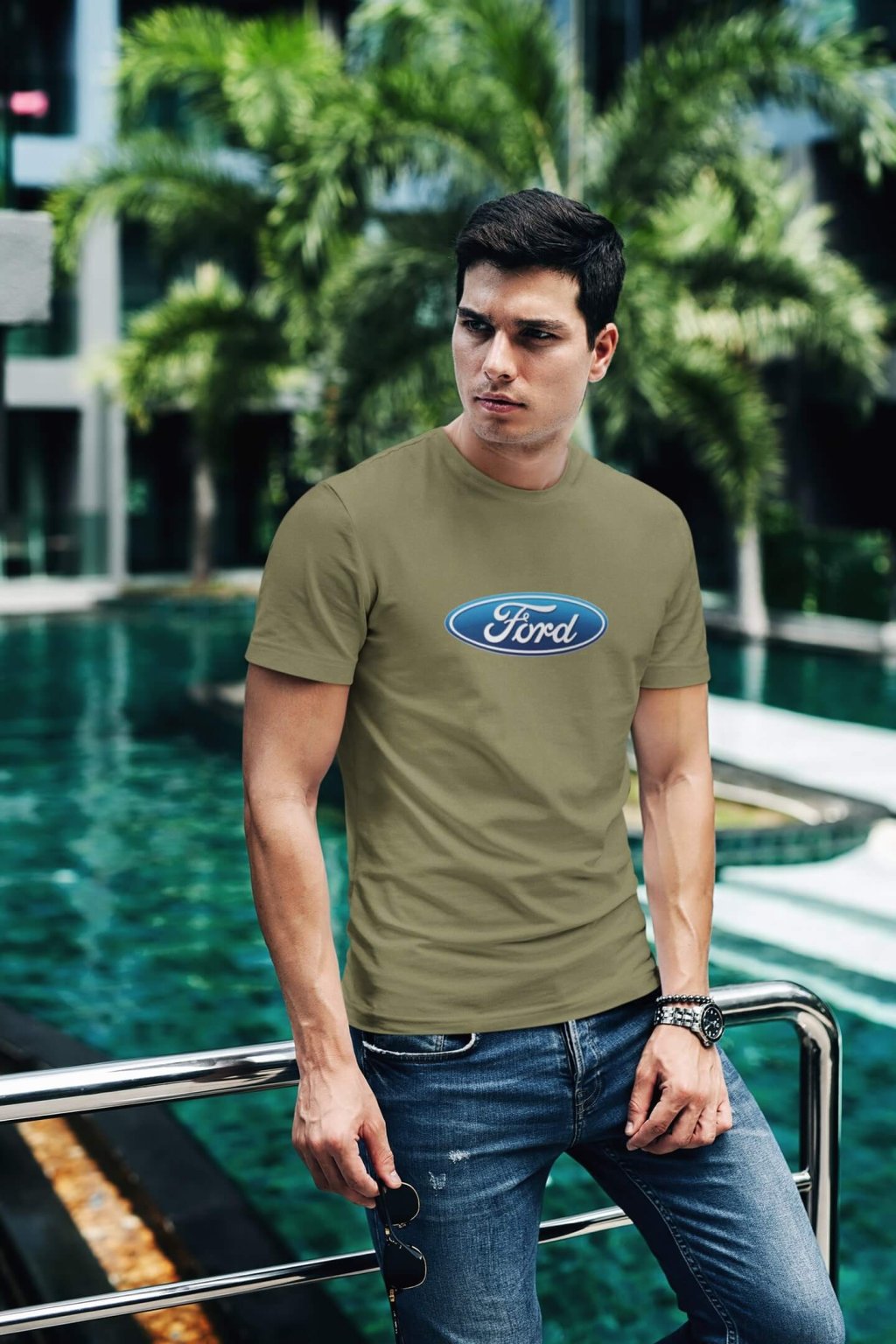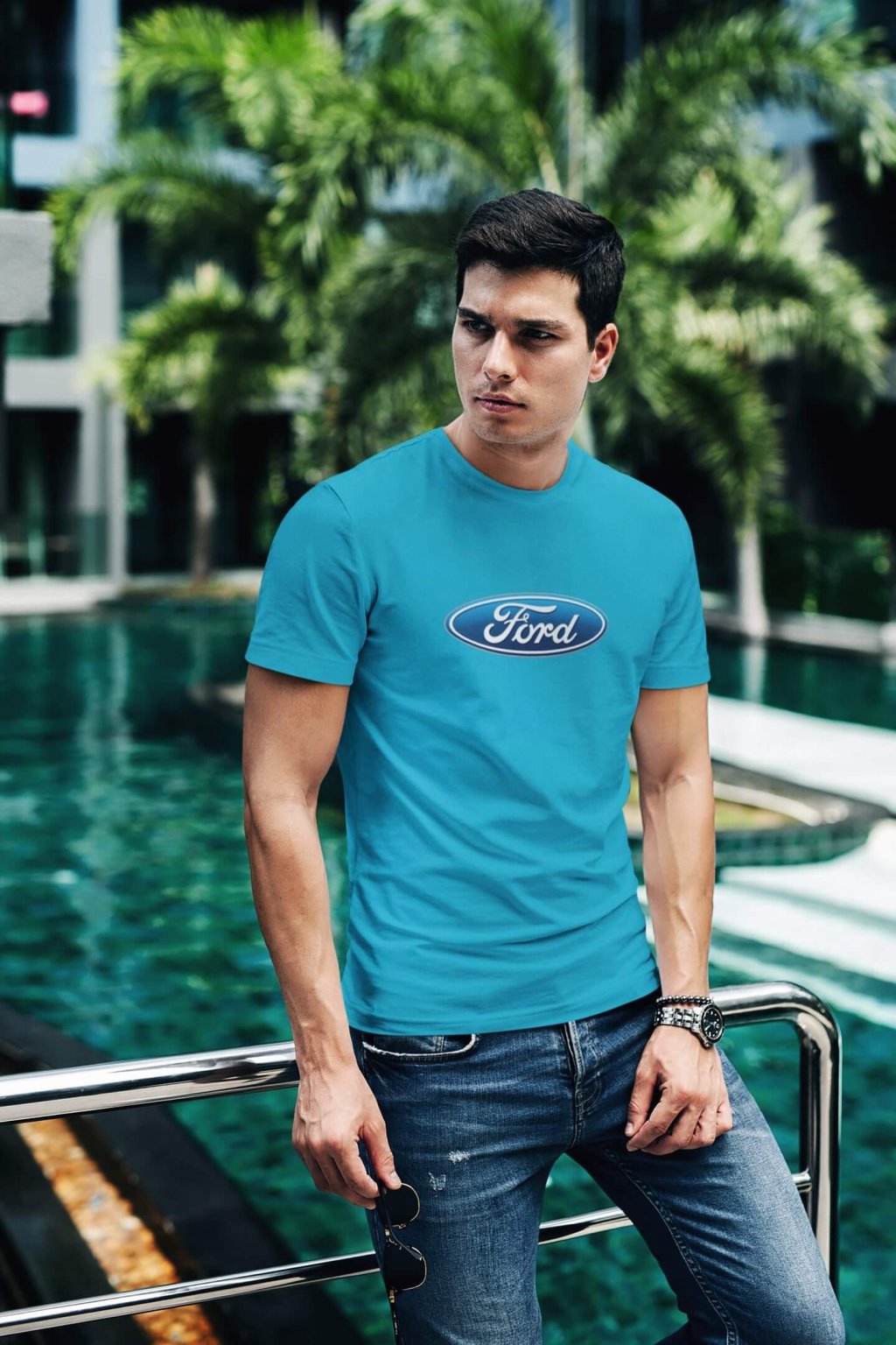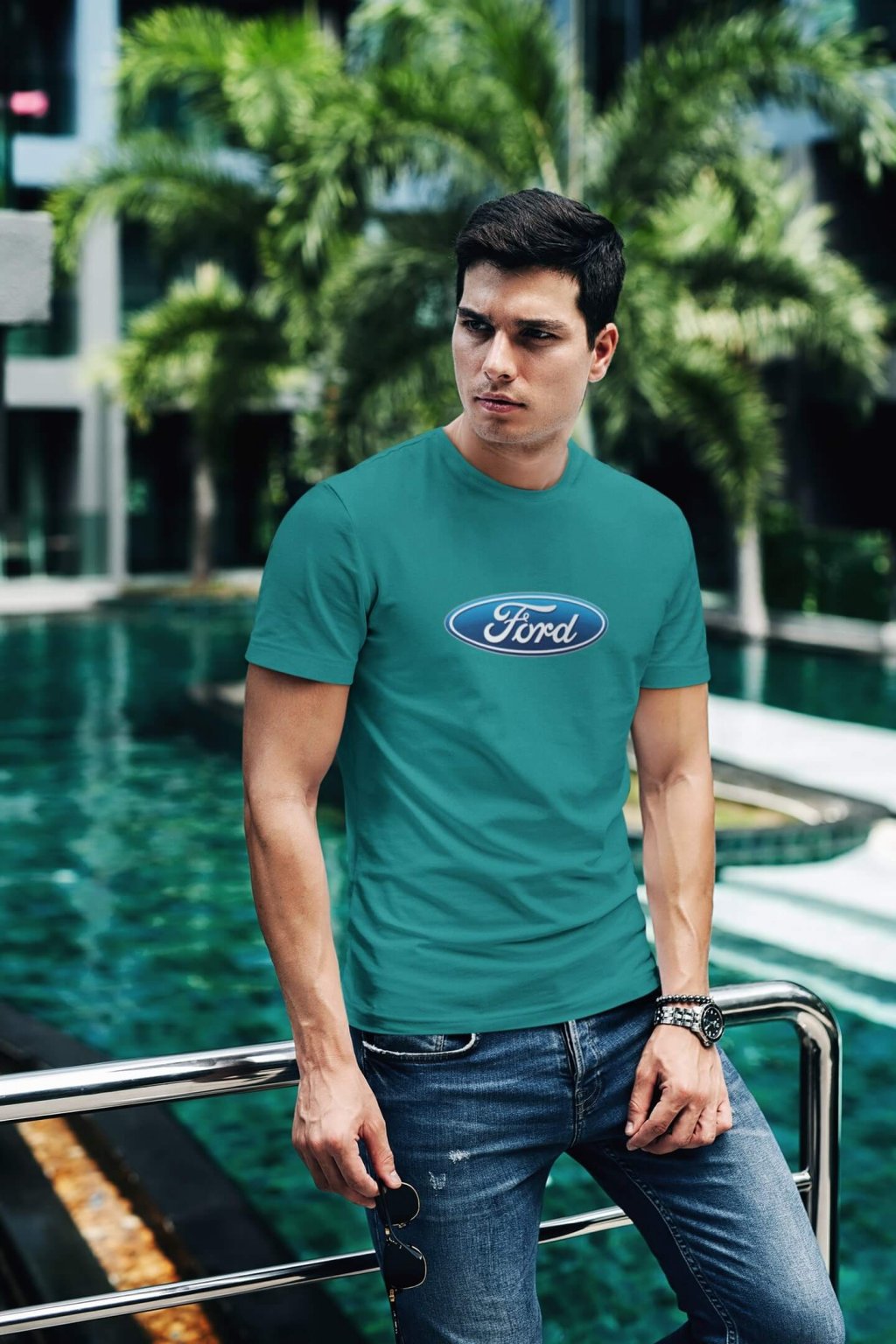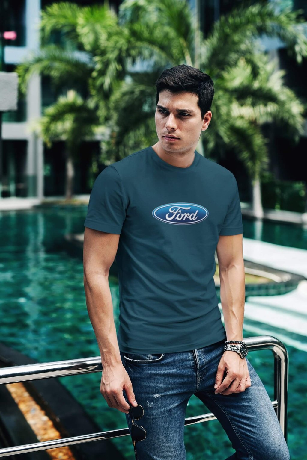 Pánske bavlnené tričko s krátkym rukávom, na ktorom je logo auta FORD.