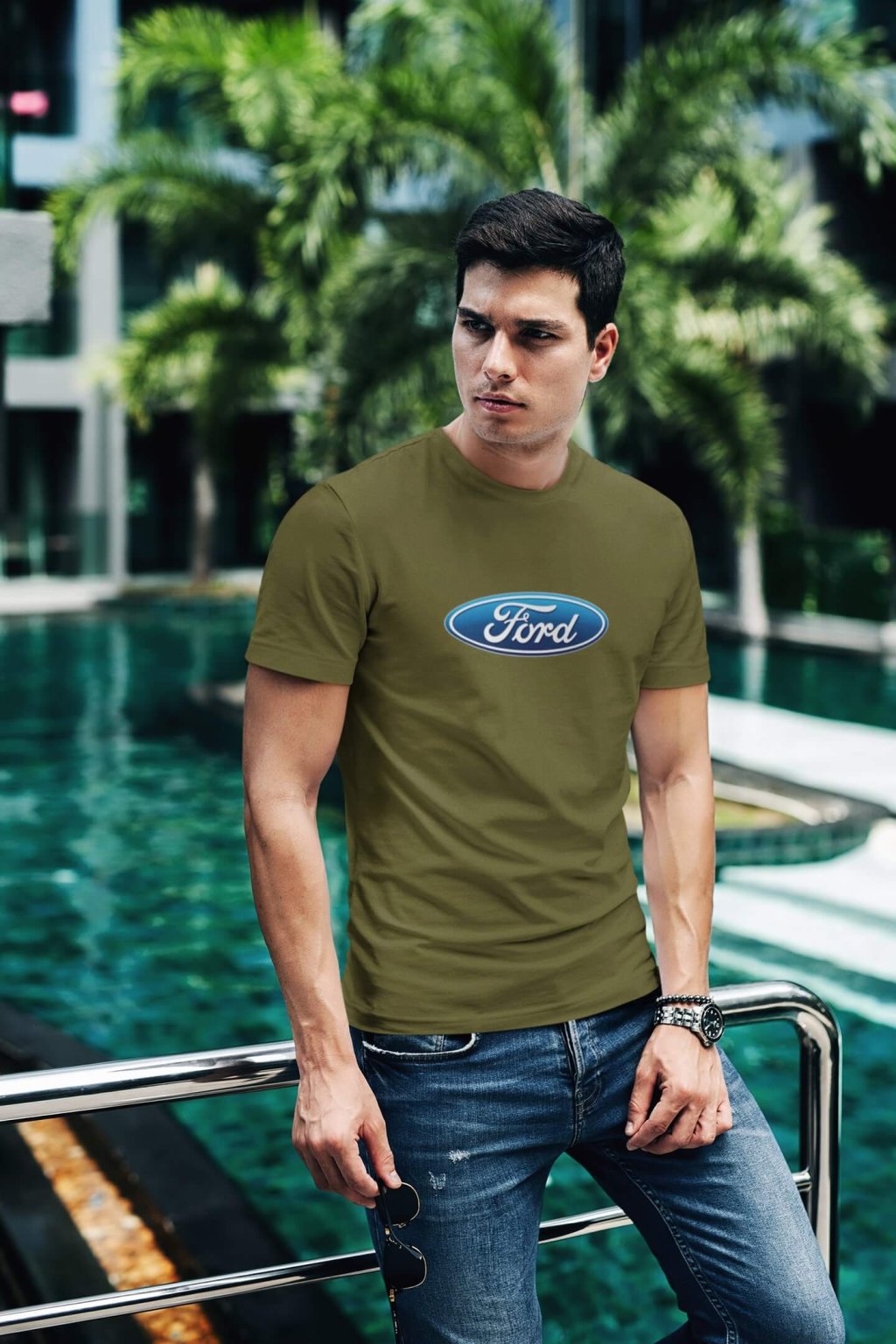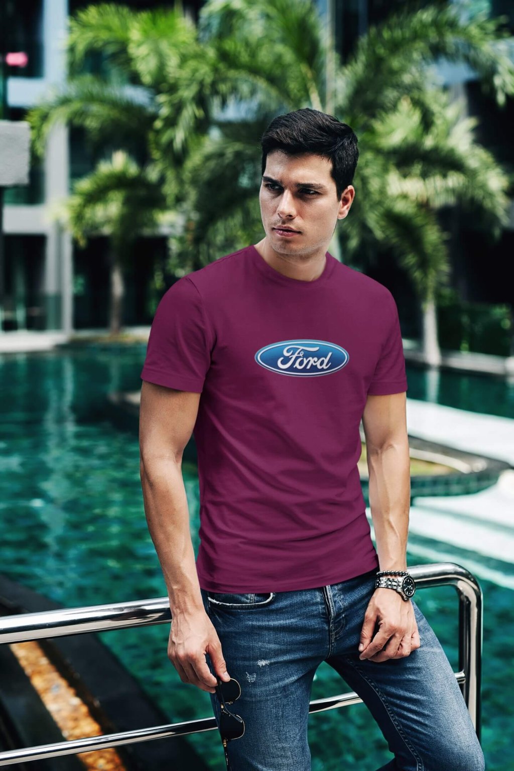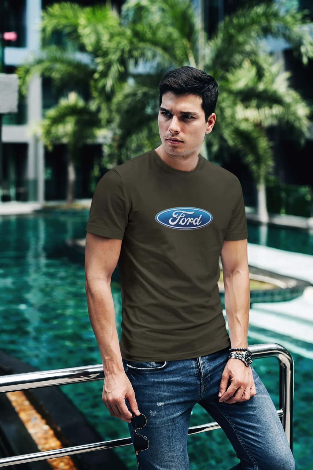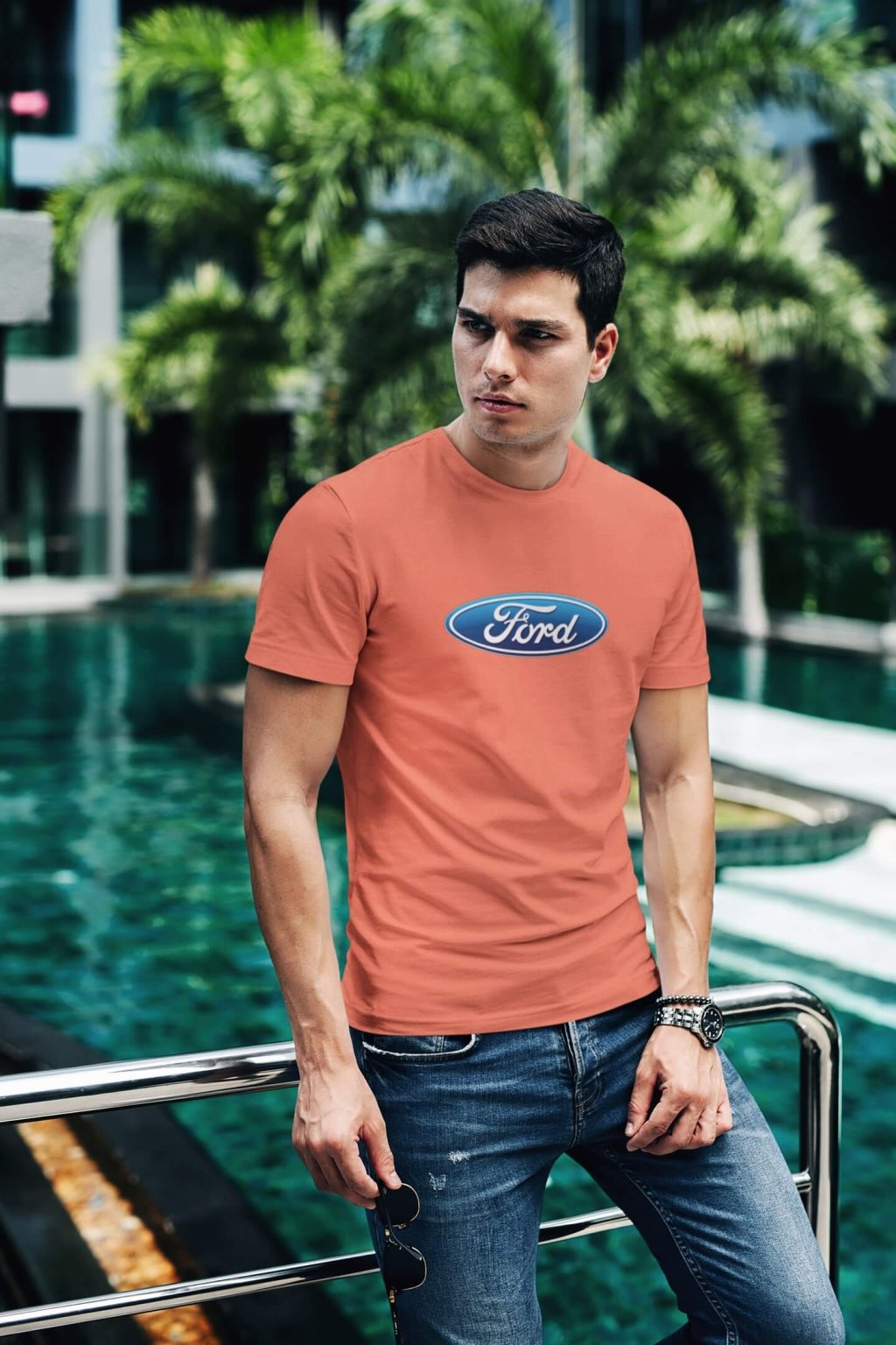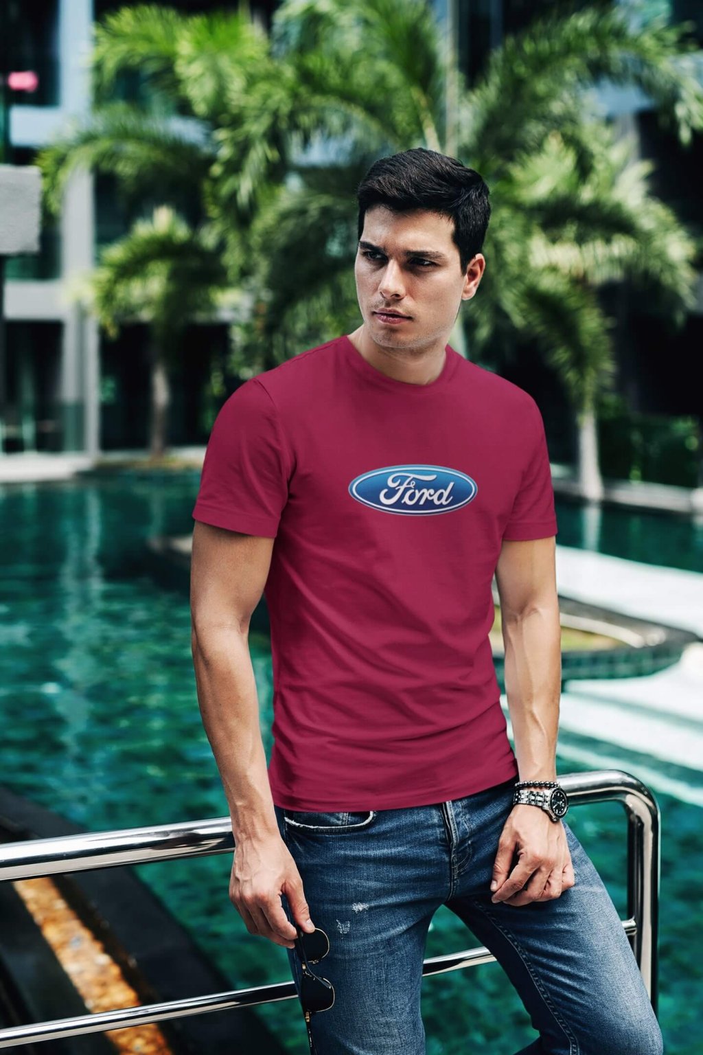 Pánske bavlnené tričko s krátkym rukávom, na ktorom je logo auta FORD.
