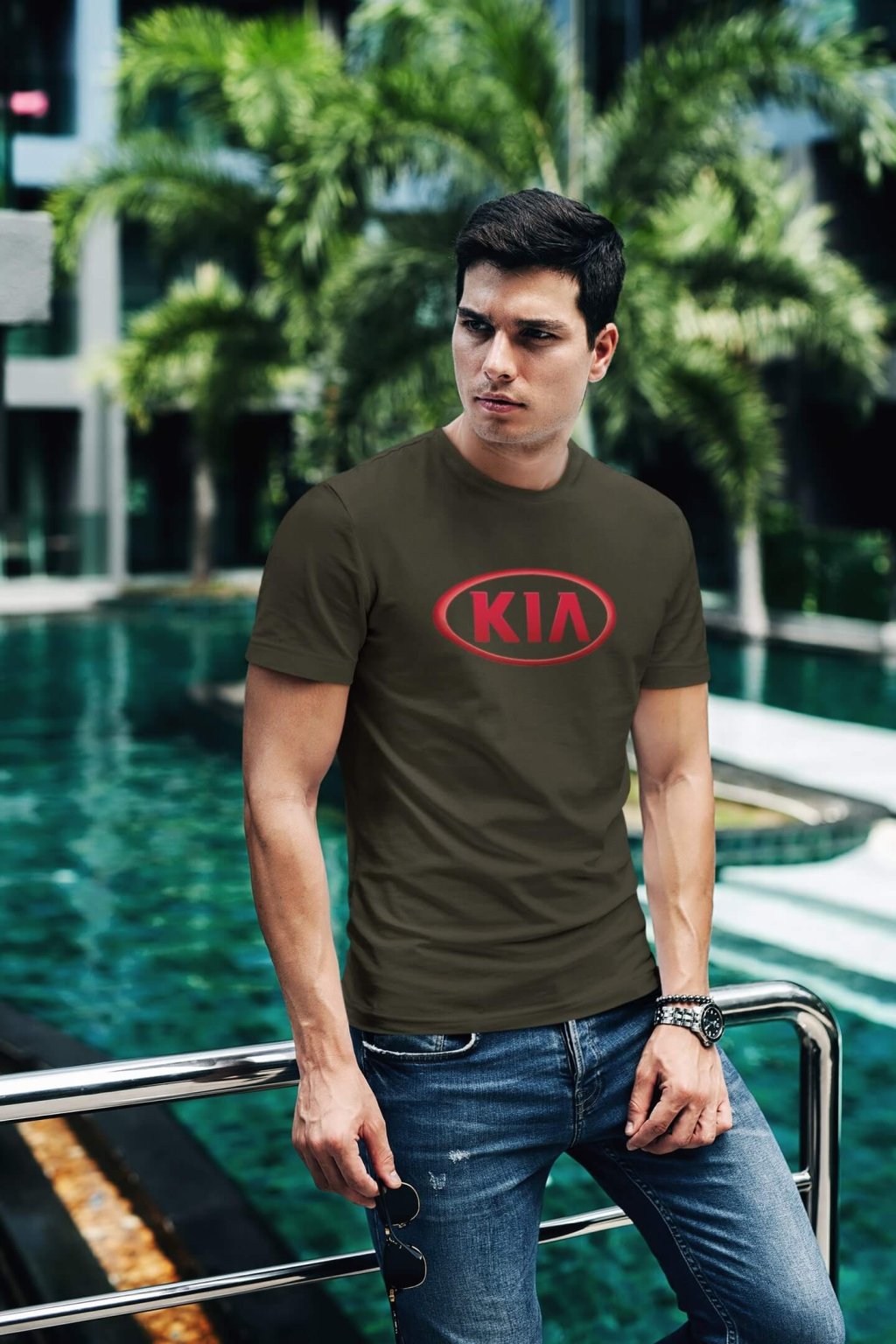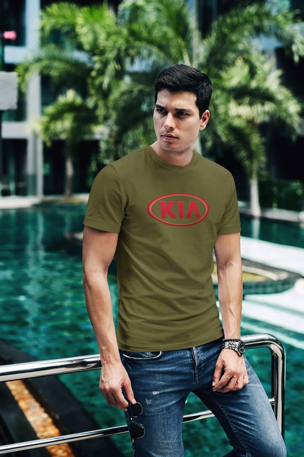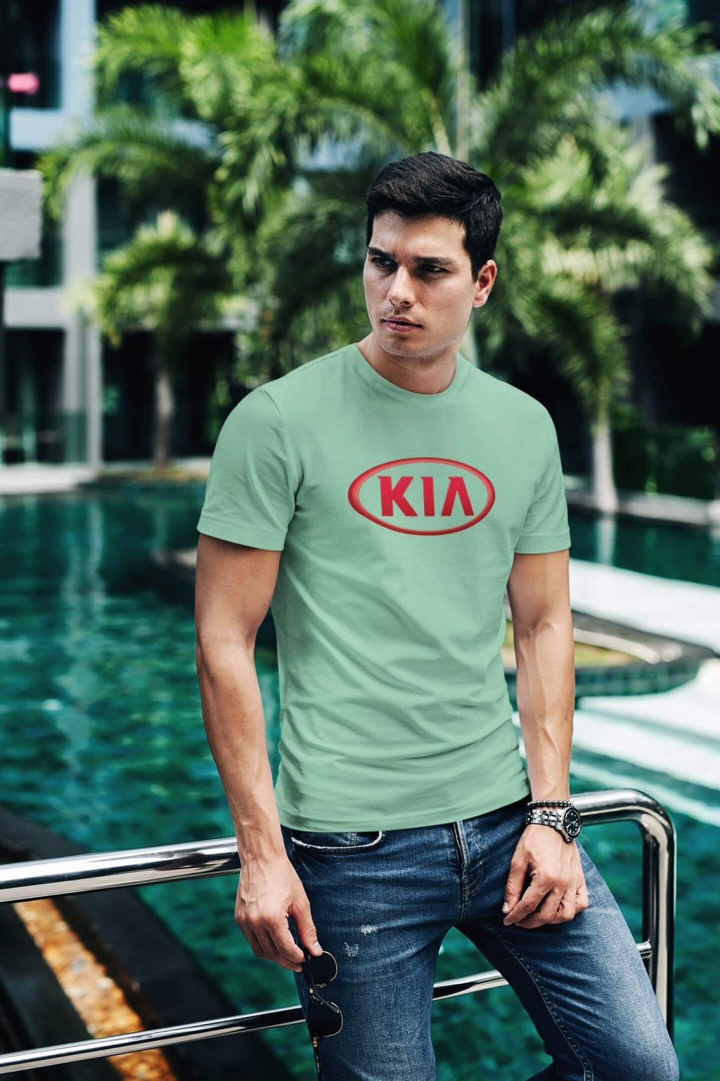 Pánske bavlnené tričko s krátkym rukávom, na ktorom je logo auta KIA.