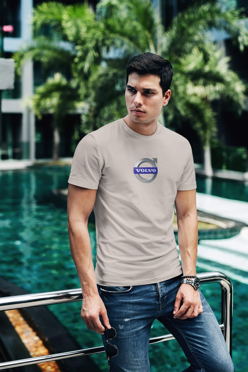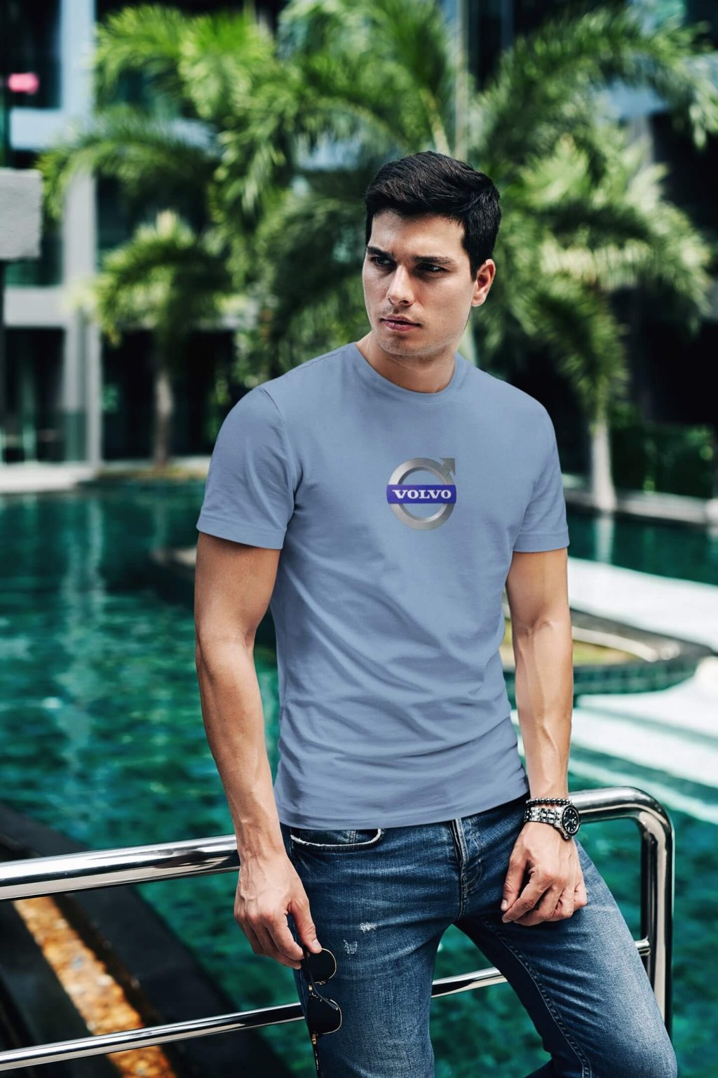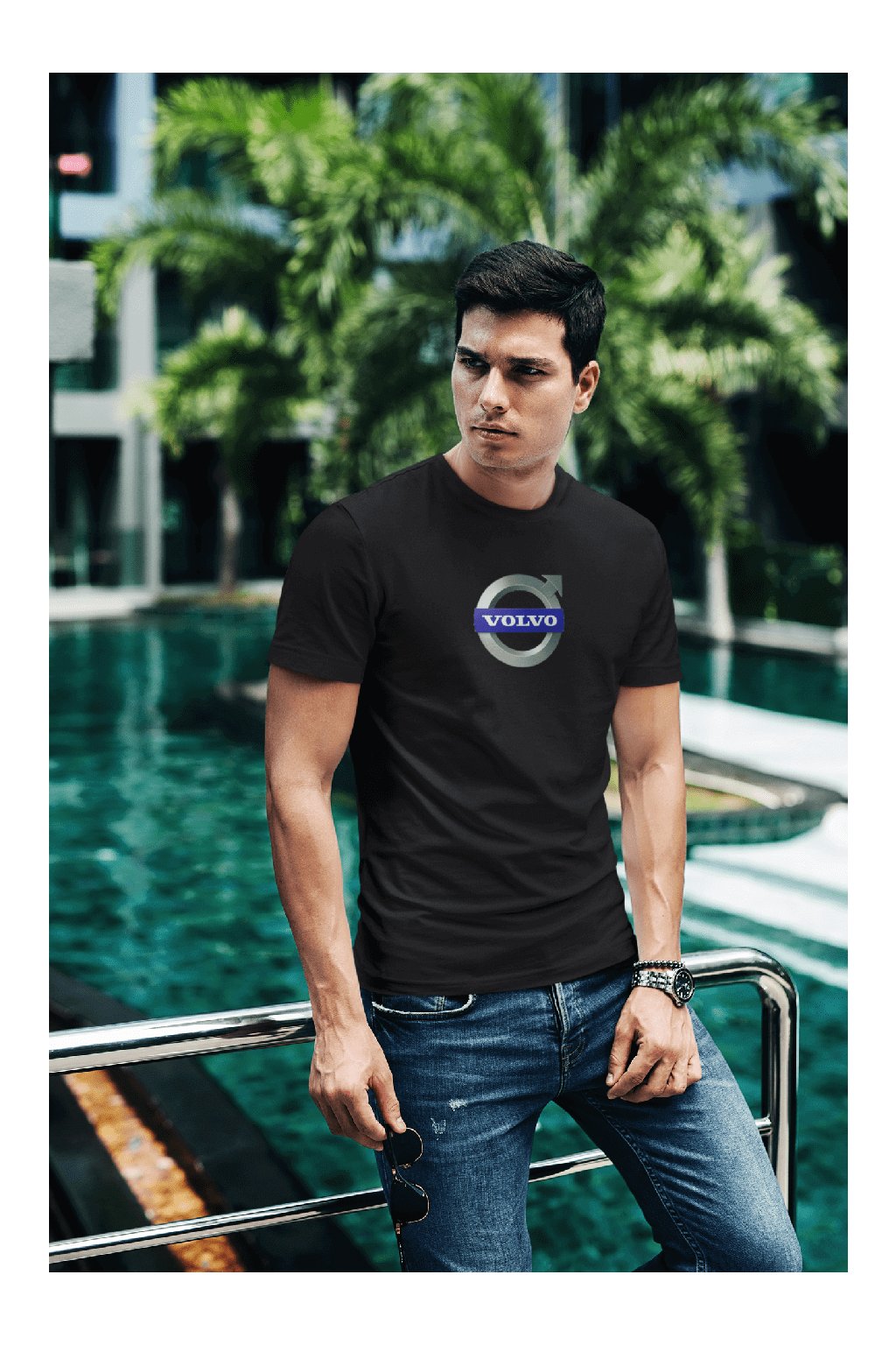 Pánske bavlnené tričko so štýlovou potlačou s logom auta Volvo. Ideálny darček pre nadšencov aút.