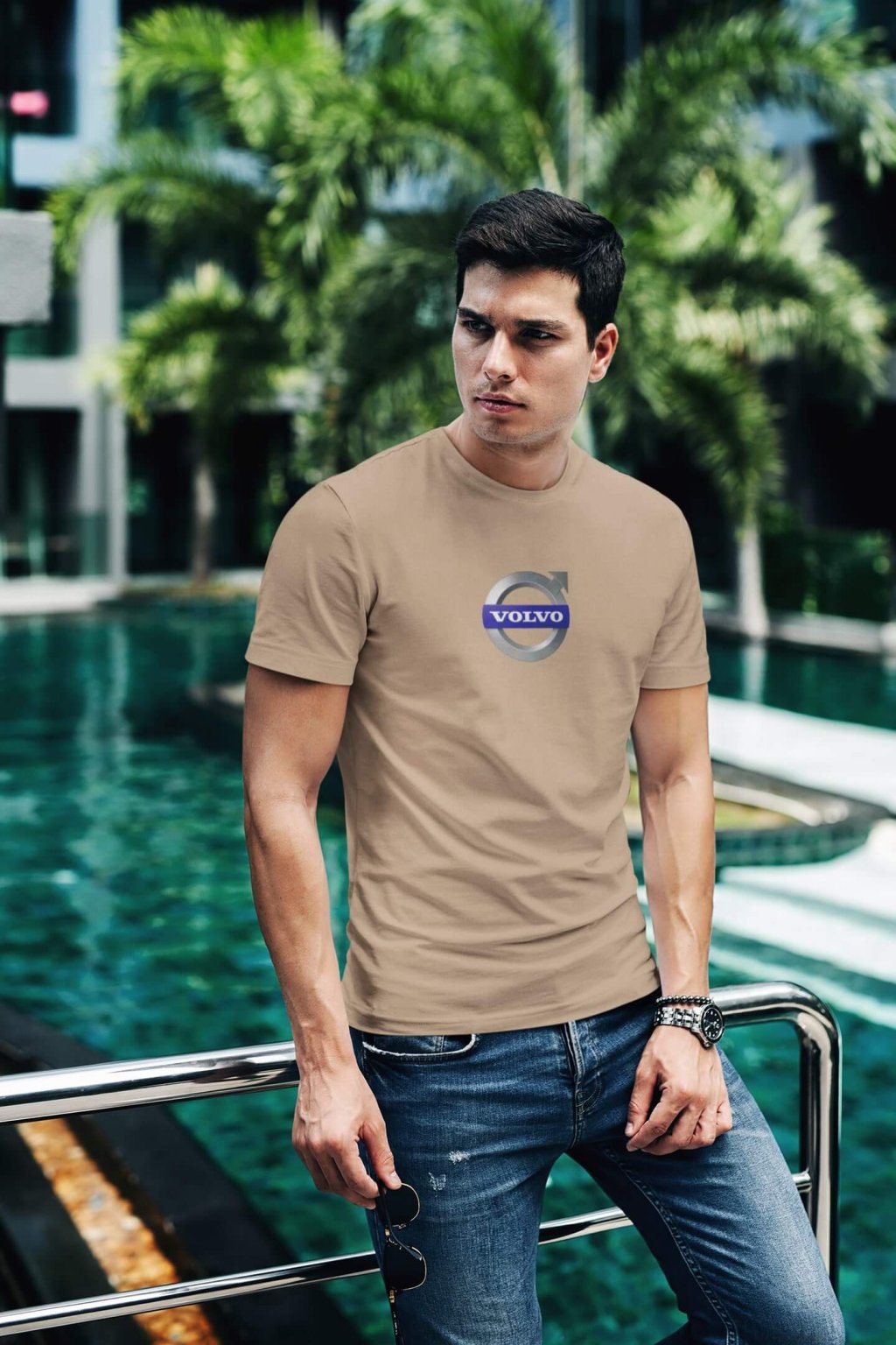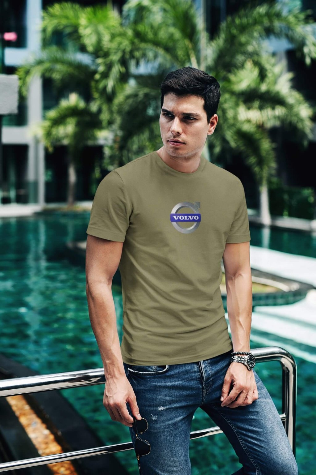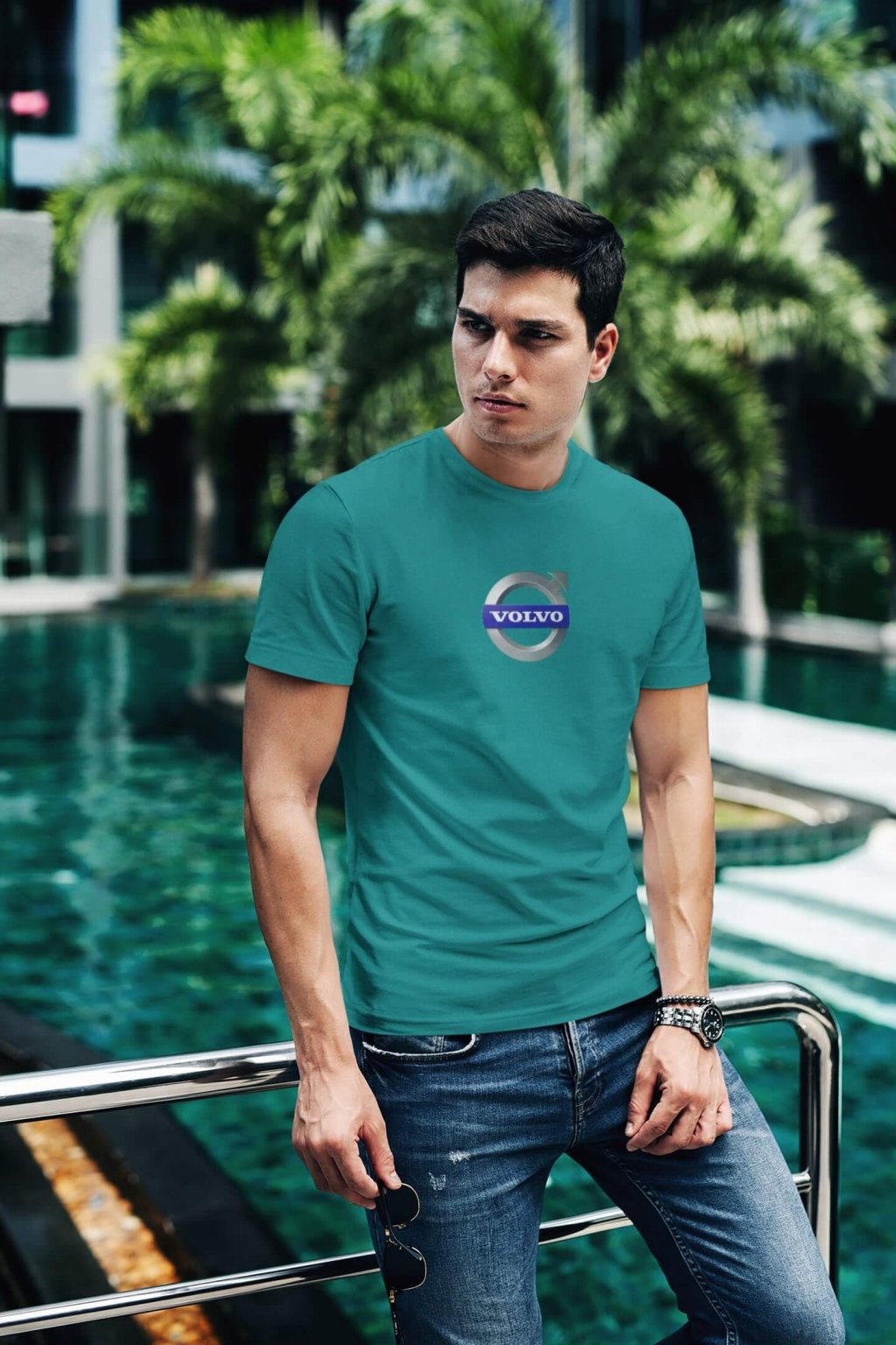 Pánske bavlnené tričko so štýlovou potlačou s logom auta Volvo. Ideálny darček pre nadšencov aút.