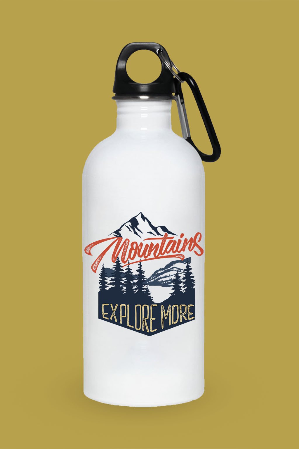Turistická fľaška v rôznych veľkostiach s motívom hôr a lesov. Telo fľaše na vodu je vyrobené z hliníka a uzáver s náustkom je vyrobený z plastu. Kryt má plastový pitón, ktorý vám umožňuje pripevniť fľašu napríklad k batohu. Šúčasťou fľašky je karabína.