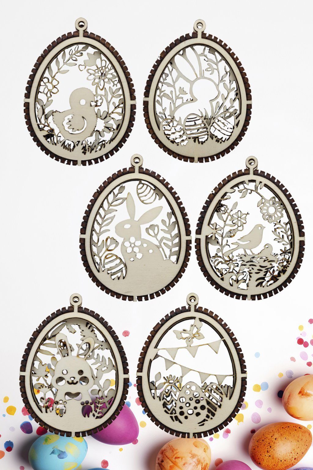Oživte svoju veľkonočnú výzdobu jedinečnými drevenými ozdobami! Táto sada obsahuje šesť nádherných závesných dekorácií v tvare vajíčok, ktoré zobrazujú jarné a veľkonočné motívy – roztomilé zajačiky, vtáčiky, kvety a veľkonočné vajíčka.