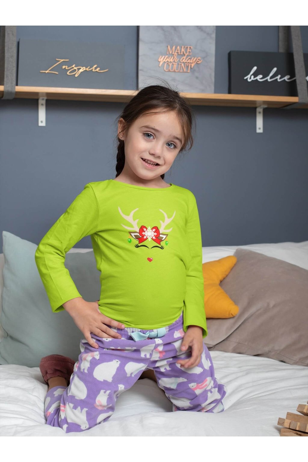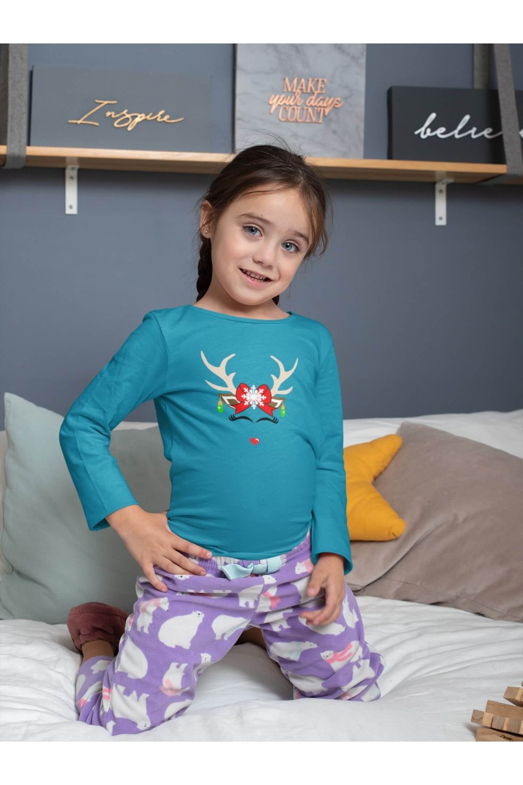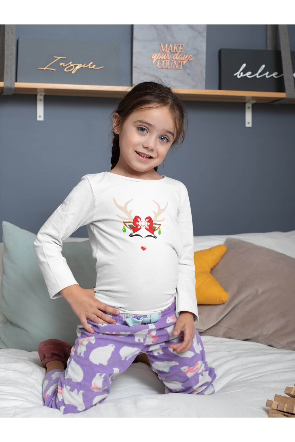 Vianočné bavlnené tričko pre dievčatá s obrázkom sobíka s mašľou.