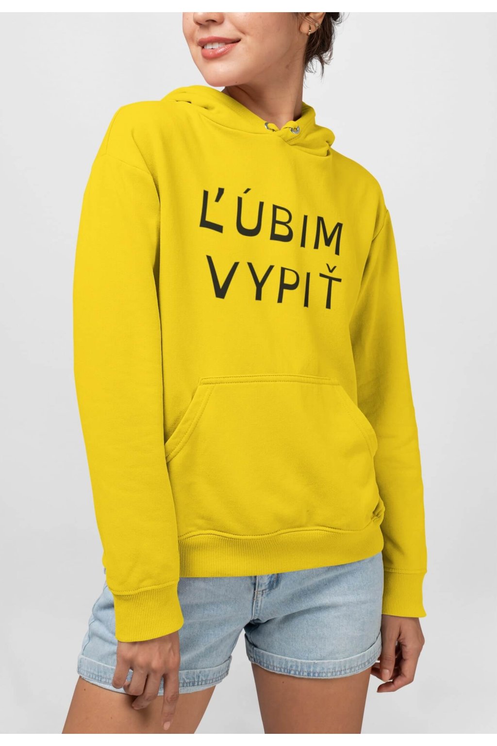 Dámska mikina s kapucňou, dlhými rukávmi, klokaním vreckom a vtipnou potlačou. Mikina, na ktorej je nápis: ,,ĽÚBIM VYPIŤ," je vhodné pre každú, ktorá neodmietne žiadne druh nápoja.